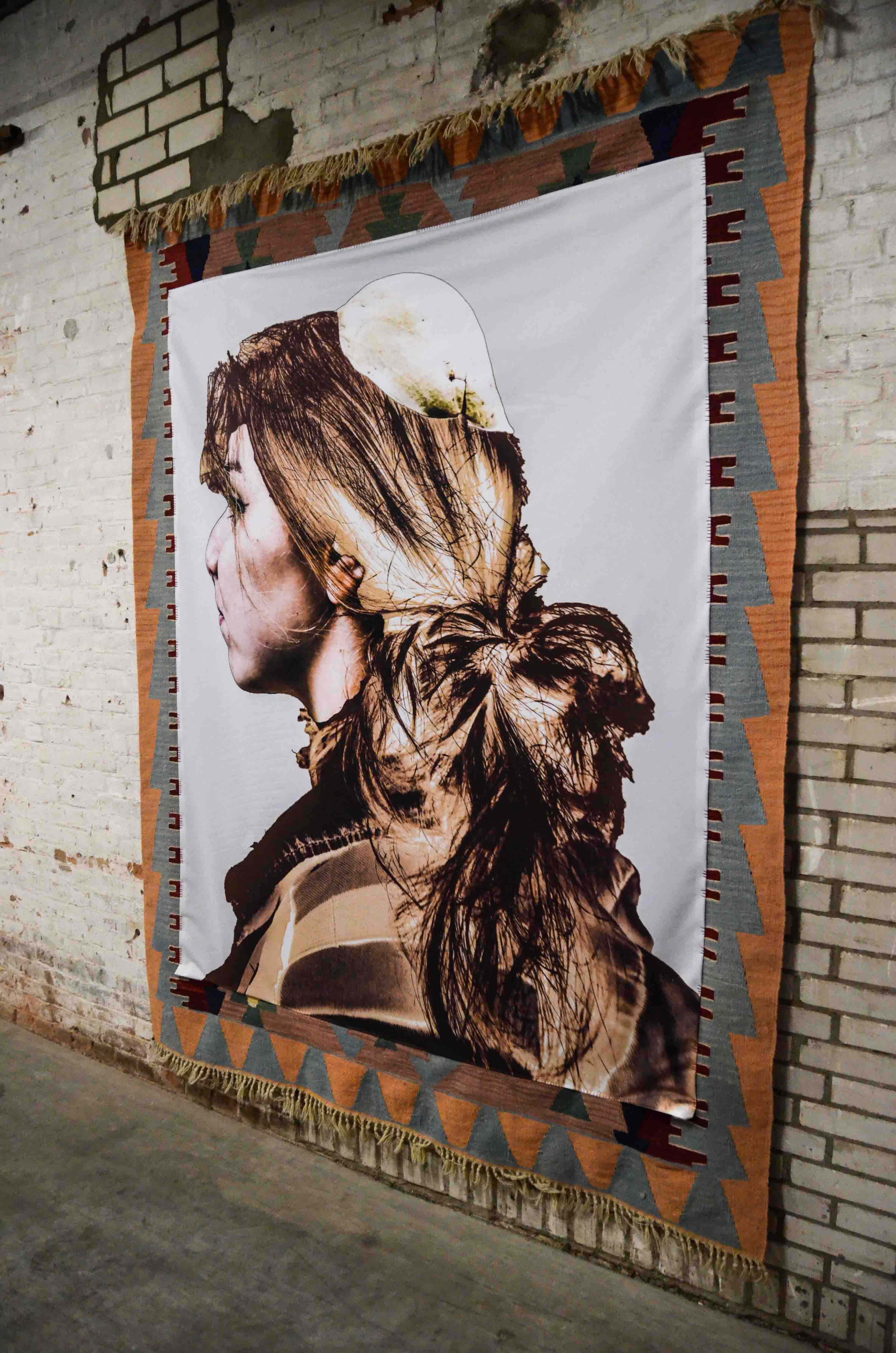 Collectie van mixed media werk met een focus op textiel en fotografie.